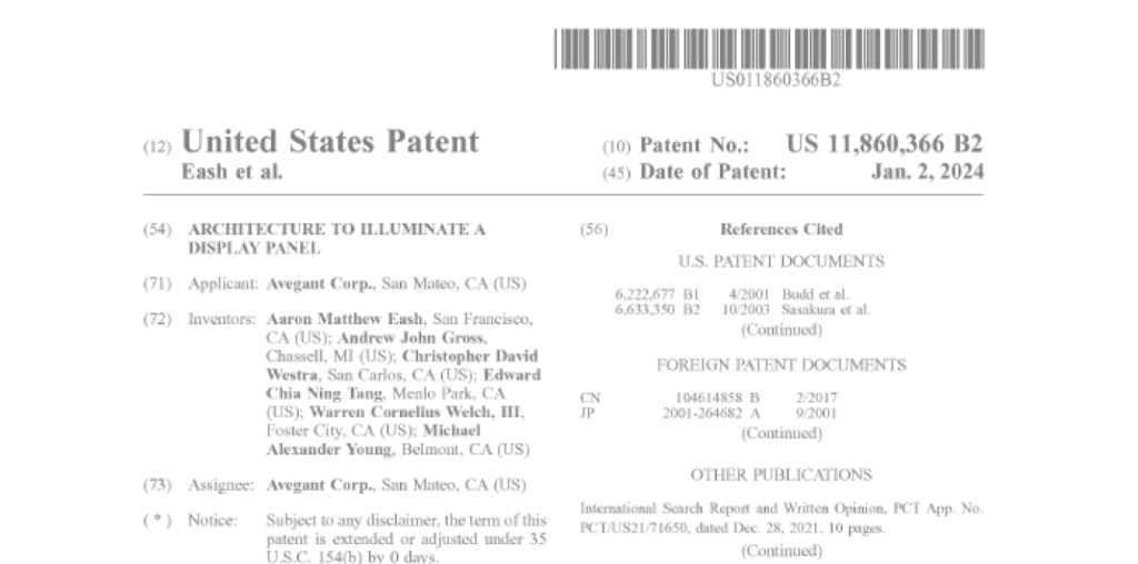 Avegant protects its innovations through patents, trade secrets, and know-how. Avegant has over 85 issued and pending patents internationally.